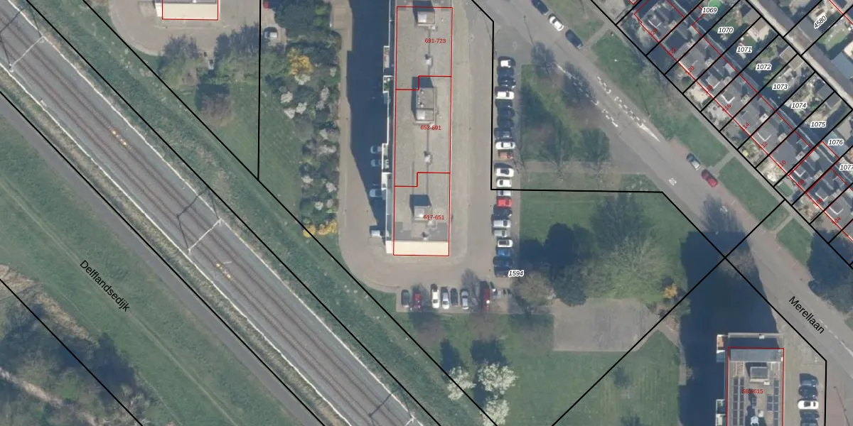 Merellaan 649 is gelegen op kadastraal perceel MSS00A1594. Deze kadastrale aanduiding is uniek en wordt gebruikt door het Kadaster om eigendomsrechten en andere zakelijke rechten vast te leggen. Het perceel maakt onderdeel uit van de kadastrale gemeente Maassluis.