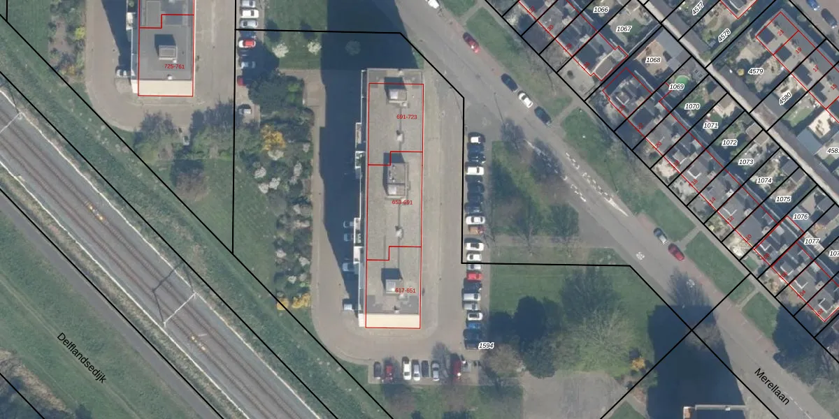Merellaan 655 is gelegen op kadastraal perceel MSS00A1594. Deze kadastrale aanduiding is uniek en wordt gebruikt door het Kadaster om eigendomsrechten en andere zakelijke rechten vast te leggen. Het perceel maakt onderdeel uit van de kadastrale gemeente Maassluis.