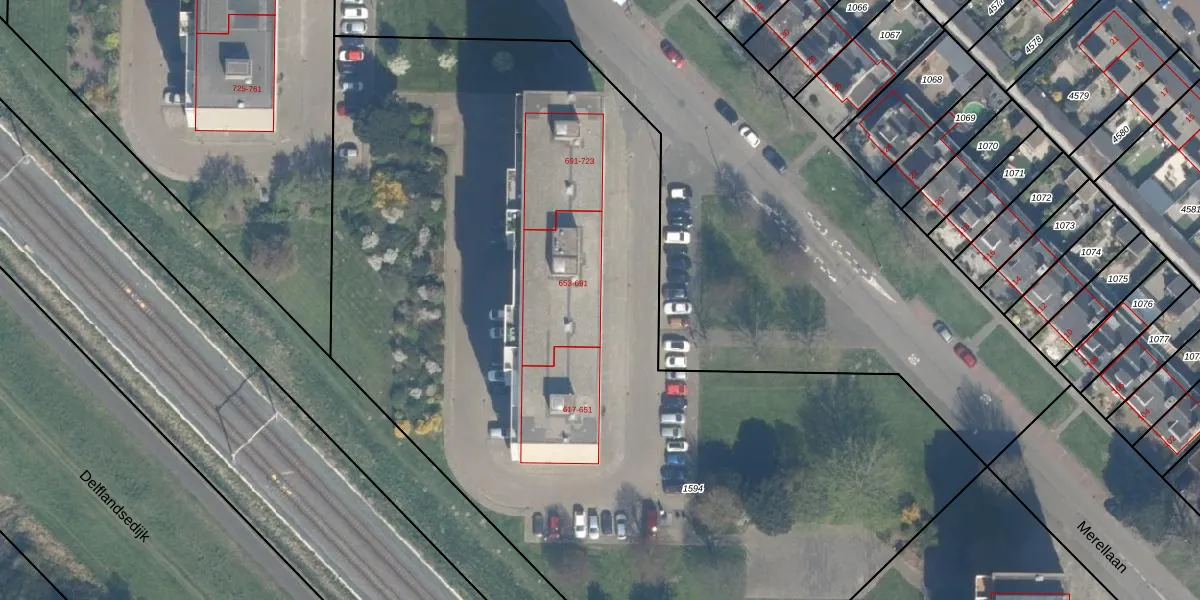 Merellaan 689 is gelegen op kadastraal perceel MSS00A1594. Deze kadastrale aanduiding is uniek en wordt gebruikt door het Kadaster om eigendomsrechten en andere zakelijke rechten vast te leggen. Het perceel maakt onderdeel uit van de kadastrale gemeente Maassluis.