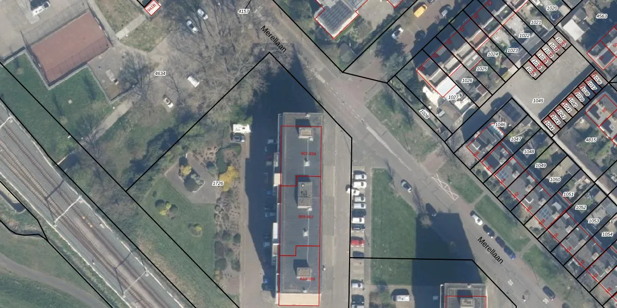 Merellaan 907 is gelegen op kadastraal perceel MSS00A1726. Deze kadastrale aanduiding is uniek en wordt gebruikt door het Kadaster om eigendomsrechten en andere zakelijke rechten vast te leggen. Het perceel maakt onderdeel uit van de kadastrale gemeente Maassluis.
