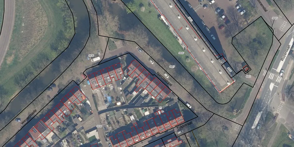 Het perceel waarop Narcisstraat 3 staat heeft een oppervlakte van 6170 m². Dit is een zeer groot perceel. De perceeloppervlakte wordt geregistreerd door het Kadaster. Gedetailleerde informatie over de maten van dit perceel kunt u vinden in het rapport Kadastrale kaart met maatvoering van Narcisstraat 3.