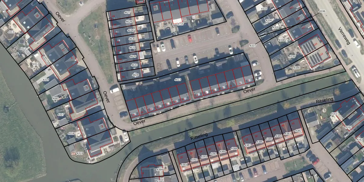 Het perceel waarop Oever 16 staat heeft een oppervlakte van 1375 m². Dit is een zeer groot perceel. De perceeloppervlakte wordt geregistreerd door het Kadaster. Gedetailleerde informatie over de maten van dit perceel kunt u vinden in het rapport Kadastrale kaart met maatvoering van Oever 16.