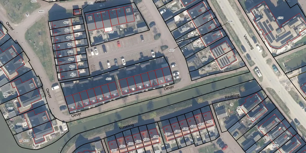 Het perceel waarop Oever 6 staat heeft een oppervlakte van 1375 m². Dit is een zeer groot perceel. De perceeloppervlakte wordt geregistreerd door het Kadaster. Gedetailleerde informatie over de maten van dit perceel kunt u vinden in het rapport Kadastrale kaart met maatvoering van Oever 6.