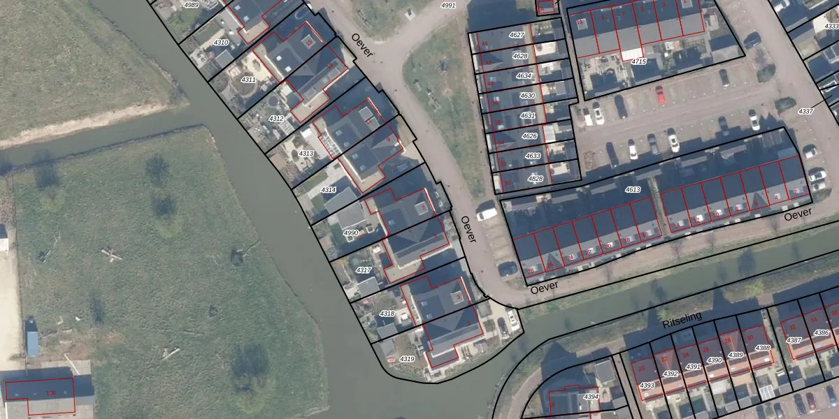 Het perceel waarop Oever 7 staat heeft een oppervlakte van 361 m². Dit is een groot perceel. De perceeloppervlakte wordt geregistreerd door het Kadaster. Gedetailleerde informatie over de maten van dit perceel kunt u vinden in het rapport Kadastrale kaart met maatvoering van Oever 7.