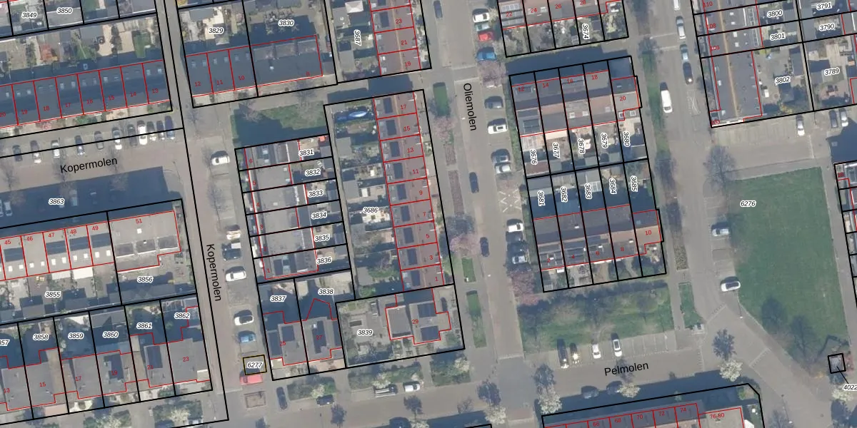Het perceel waarop Oliemolen 7 staat heeft een oppervlakte van 1079 m². Dit is een zeer groot perceel. De perceeloppervlakte wordt geregistreerd door het Kadaster. Gedetailleerde informatie over de maten van dit perceel kunt u vinden in het rapport Kadastrale kaart met maatvoering van Oliemolen 7.