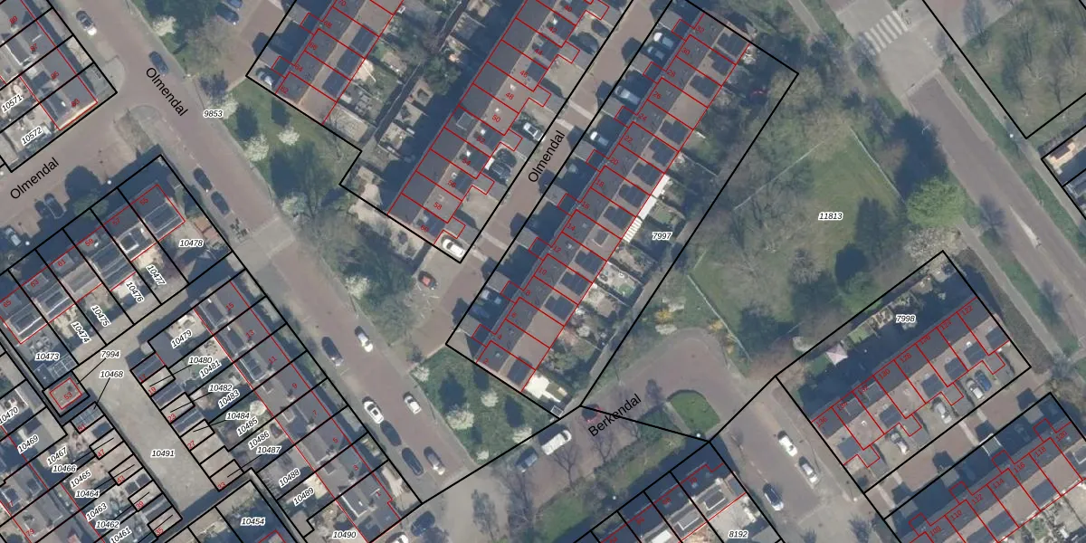 Het perceel waarop Olmendal 10 staat heeft een oppervlakte van 2066 m². Dit is een zeer groot perceel. De perceeloppervlakte wordt geregistreerd door het Kadaster. Gedetailleerde informatie over de maten van dit perceel kunt u vinden in het rapport Kadastrale kaart met maatvoering van Olmendal 10.
