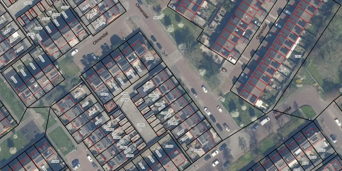 Olmendal 13 is gelegen op kadastraal perceel MSS00D10481. Deze kadastrale aanduiding is uniek en wordt gebruikt door het Kadaster om eigendomsrechten en andere zakelijke rechten vast te leggen. Het perceel maakt onderdeel uit van de kadastrale gemeente Maassluis.