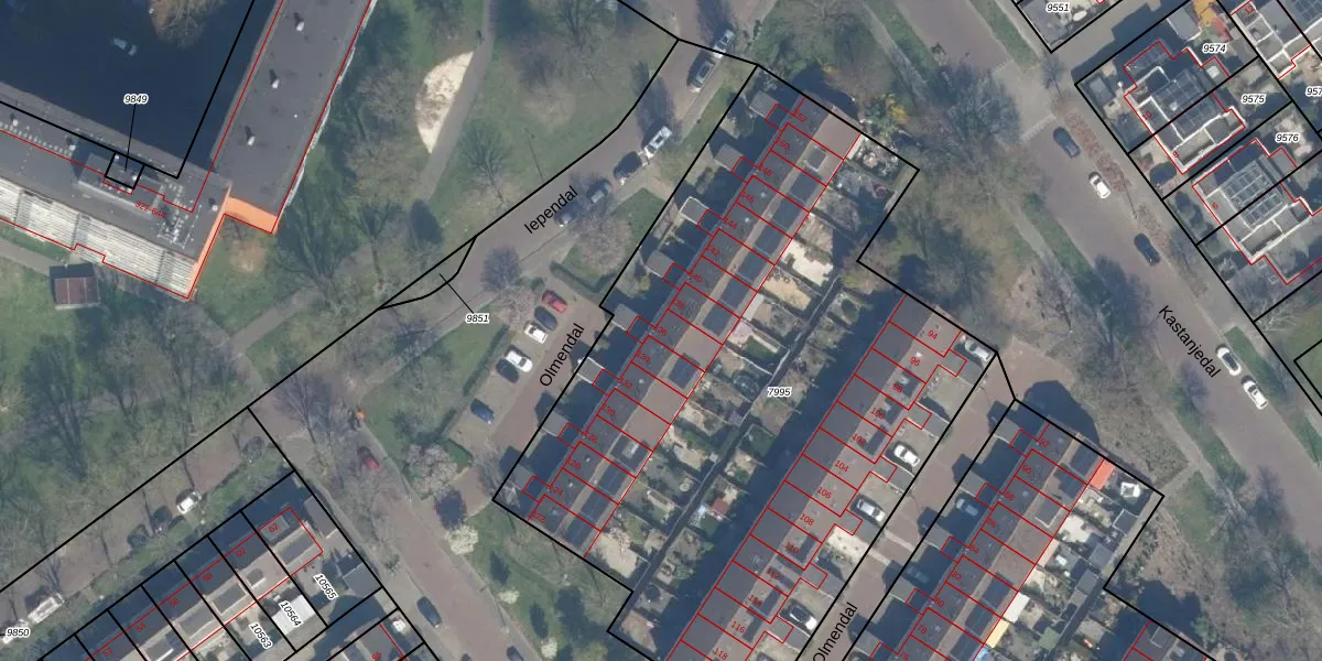 Het perceel waarop Olmendal 136 staat heeft een oppervlakte van 3885 m². Dit is een zeer groot perceel. De perceeloppervlakte wordt geregistreerd door het Kadaster. Gedetailleerde informatie over de maten van dit perceel kunt u vinden in het rapport Kadastrale kaart met maatvoering van Olmendal 136.