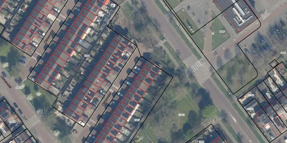 Het perceel waarop Olmendal 30 staat heeft een oppervlakte van 2066 m². Dit is een zeer groot perceel. De perceeloppervlakte wordt geregistreerd door het Kadaster. Gedetailleerde informatie over de maten van dit perceel kunt u vinden in het rapport Kadastrale kaart met maatvoering van Olmendal 30.