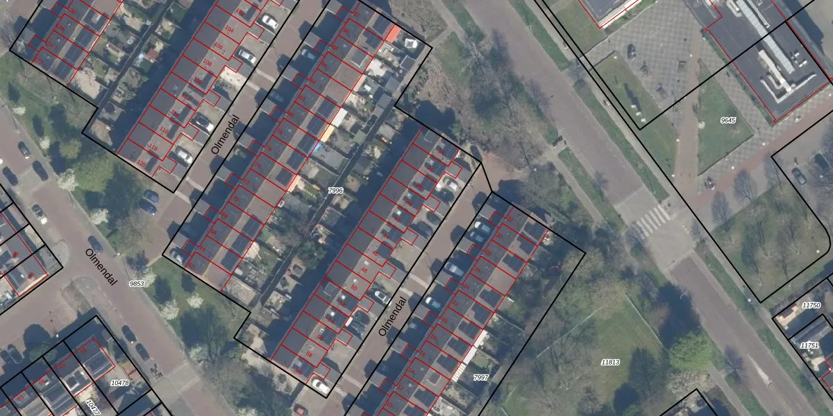 Het perceel waarop Olmendal 40 staat heeft een oppervlakte van 3778 m². Dit is een zeer groot perceel. De perceeloppervlakte wordt geregistreerd door het Kadaster. Gedetailleerde informatie over de maten van dit perceel kunt u vinden in het rapport Kadastrale kaart met maatvoering van Olmendal 40.