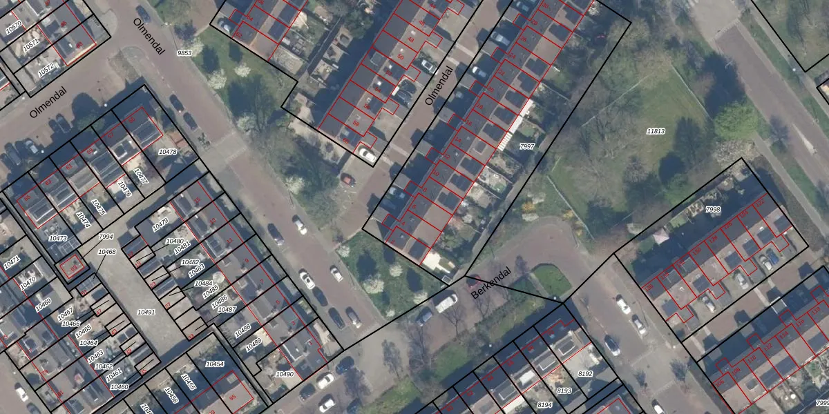 Het perceel waarop Olmendal 6 staat heeft een oppervlakte van 2066 m². Dit is een zeer groot perceel. De perceeloppervlakte wordt geregistreerd door het Kadaster. Gedetailleerde informatie over de maten van dit perceel kunt u vinden in het rapport Kadastrale kaart met maatvoering van Olmendal 6.