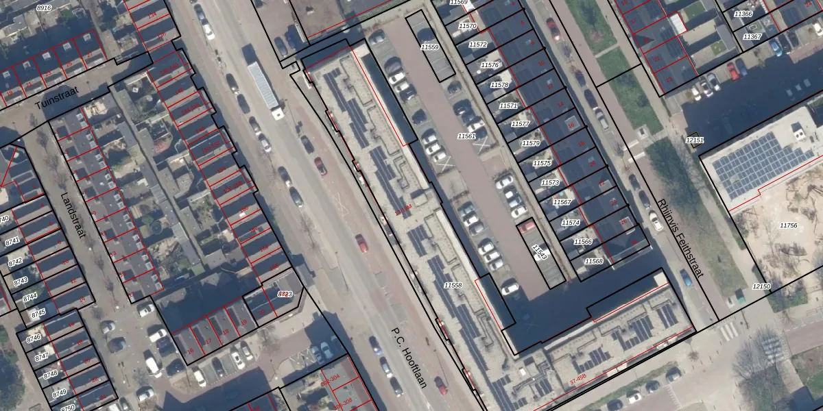 Het perceel waarop P.C. Hooftlaan 17-G staat heeft een oppervlakte van 2175 m². Dit is een zeer groot perceel. De perceeloppervlakte wordt geregistreerd door het Kadaster. Gedetailleerde informatie over de maten van dit perceel kunt u vinden in het rapport Kadastrale kaart met maatvoering van P.C. Hooftlaan 17-G.