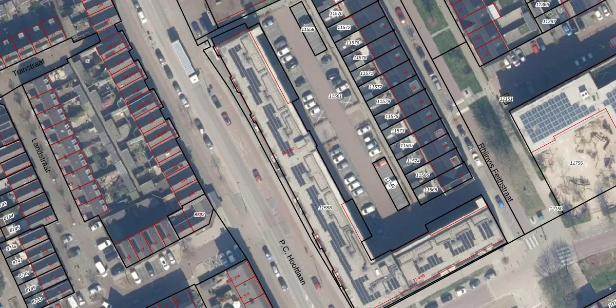 Het perceel waarop P.C. Hooftlaan 19-H staat heeft een oppervlakte van 2175 m². Dit is een zeer groot perceel. De perceeloppervlakte wordt geregistreerd door het Kadaster. Gedetailleerde informatie over de maten van dit perceel kunt u vinden in het rapport Kadastrale kaart met maatvoering van P.C. Hooftlaan 19-H.