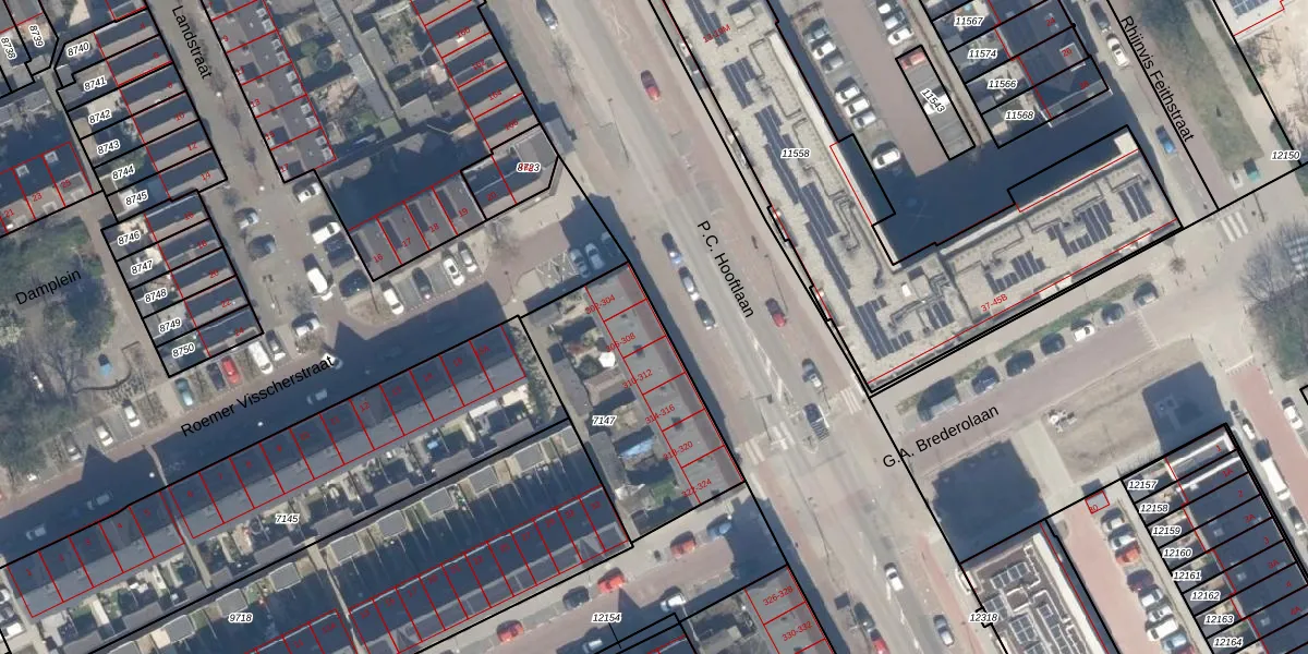 Het perceel waarop P.C. Hooftlaan 308 staat heeft een oppervlakte van 736 m². Dit is een groot perceel. De perceeloppervlakte wordt geregistreerd door het Kadaster. Gedetailleerde informatie over de maten van dit perceel kunt u vinden in het rapport Kadastrale kaart met maatvoering van P.C. Hooftlaan 308.