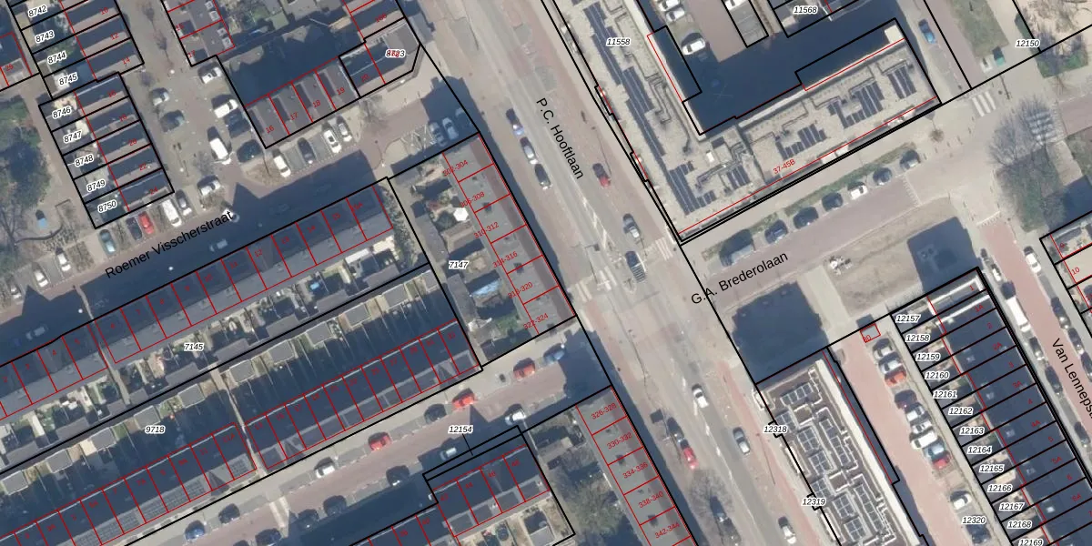 Het perceel waarop P.C. Hooftlaan 320 staat heeft een oppervlakte van 736 m². Dit is een groot perceel. De perceeloppervlakte wordt geregistreerd door het Kadaster. Gedetailleerde informatie over de maten van dit perceel kunt u vinden in het rapport Kadastrale kaart met maatvoering van P.C. Hooftlaan 320.