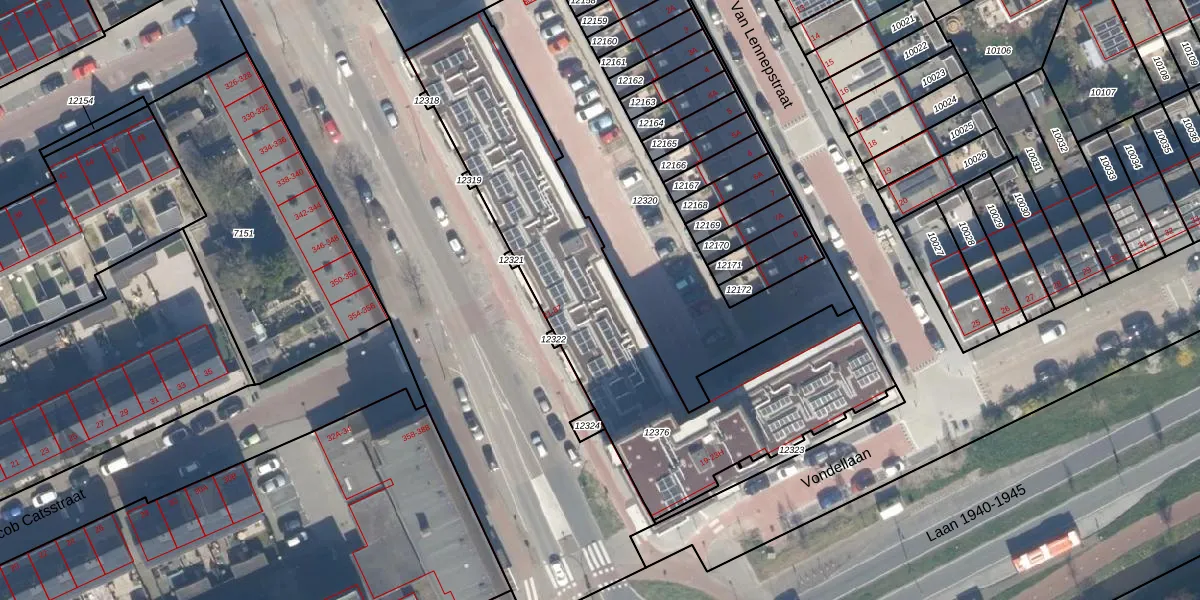 Het adres is gelegen op perceel 12376 in de sectie D en de kadastrale gemeente Maassluis. De kadastrale aanduiding is aldus MSS00-D-12376. Het perceel is met 1776 m² relatief groot. Het gemiddelde ligt in de kadastrale gemeente Maassluis op 946,84 m². Het grootste perceel in de kadastrale gemeente is 34,0 ha. Het kleinste perceel heeft een oppervlakte van 0 m². Op het perceel zijn 66 adressen aanwezig. De laatste wijziging in het de Basisregistratie Kadaster (BRK) was op 17-11-2025.