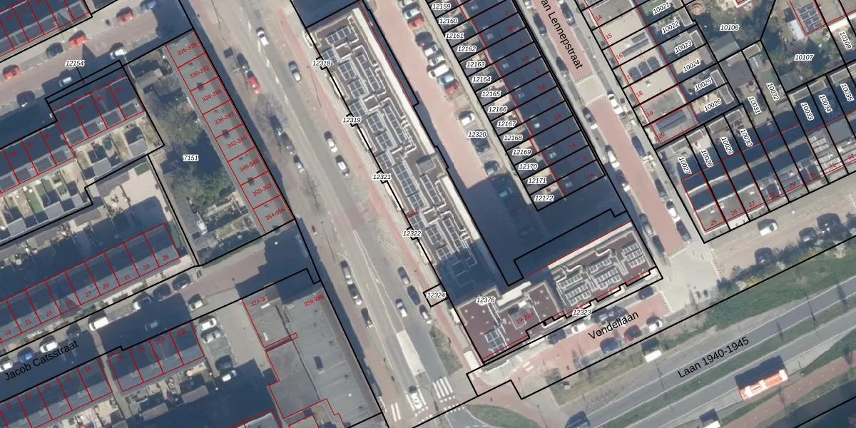 Het adres is gelegen op perceel 12376 in de sectie D en de kadastrale gemeente Maassluis. De kadastrale aanduiding is aldus MSS00-D-12376. Het perceel is met 1776 m² relatief groot. Het gemiddelde ligt in de kadastrale gemeente Maassluis op 946,84 m². Het grootste perceel in de kadastrale gemeente is 34,0 ha. Het kleinste perceel heeft een oppervlakte van 0 m². Op het perceel liggen in totaal 66 adressen. De huidige grenzen van het perceel zijn digitaal in de Basisregistratie Kadaster (BRK) geregistreerd op 17-11-2025.