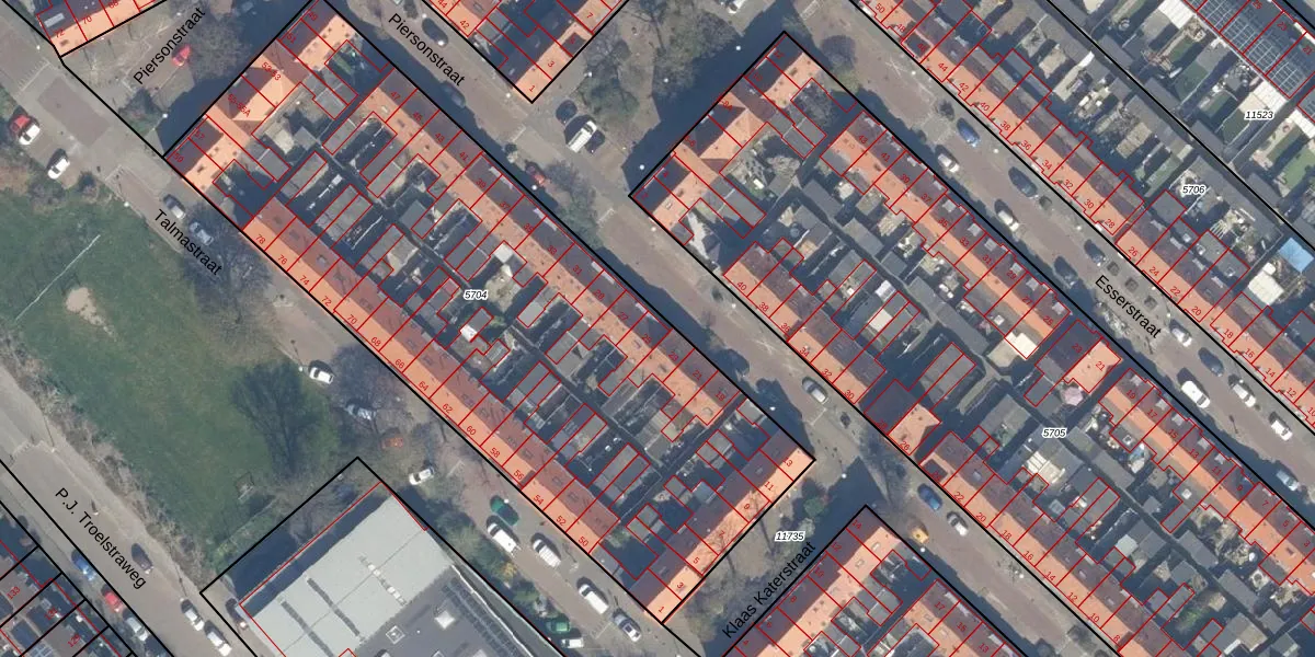 Piersonstraat 25 is gelegen op kadastraal perceel MSS00D5704. Deze kadastrale aanduiding is uniek en wordt gebruikt door het Kadaster om eigendomsrechten en andere zakelijke rechten vast te leggen. Het perceel maakt onderdeel uit van de kadastrale gemeente Maassluis.