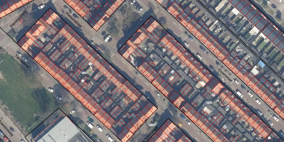 Het perceel waarop Piersonstraat 40 staat heeft een oppervlakte van 4628 m². Dit is een zeer groot perceel. De perceeloppervlakte wordt geregistreerd door het Kadaster. Gedetailleerde informatie over de maten van dit perceel kunt u vinden in het rapport Kadastrale kaart met maatvoering van Piersonstraat 40.