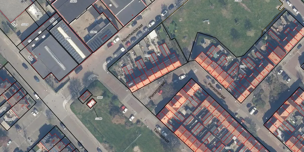 Het perceel waarop Piersonstraat 66 staat heeft een oppervlakte van 1170 m². Dit is een zeer groot perceel. De perceeloppervlakte wordt geregistreerd door het Kadaster. Gedetailleerde informatie over de maten van dit perceel kunt u vinden in het rapport Kadastrale kaart met maatvoering van Piersonstraat 66.