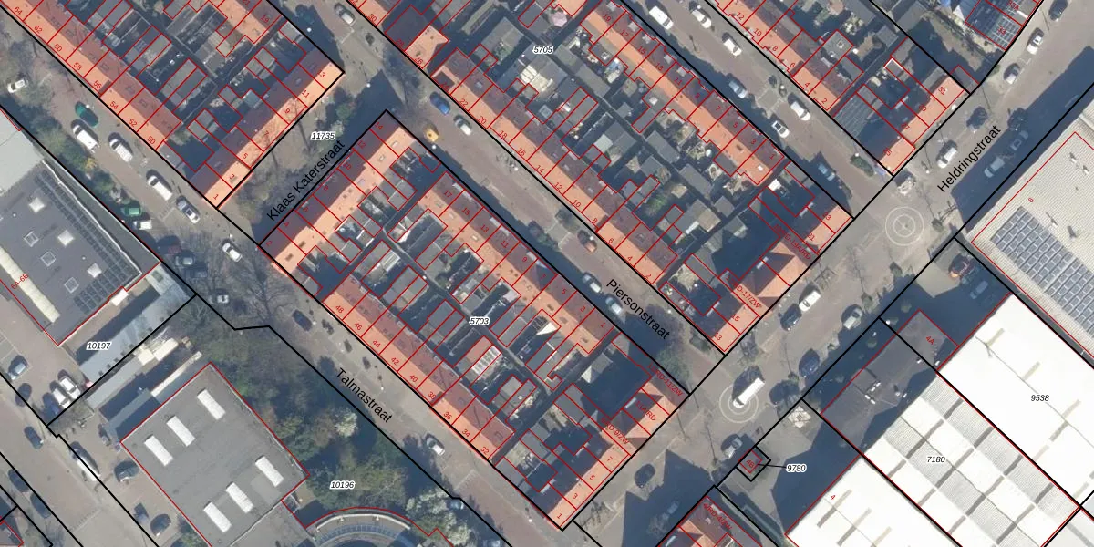 Het perceel waarop Piersonstraat 7 staat heeft een oppervlakte van 2621 m². Dit is een zeer groot perceel. De perceeloppervlakte wordt geregistreerd door het Kadaster. Gedetailleerde informatie over de maten van dit perceel kunt u vinden in het rapport Kadastrale kaart met maatvoering van Piersonstraat 7.