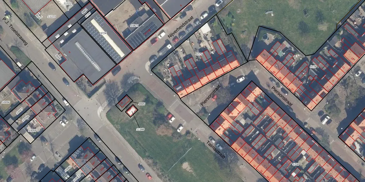 Het perceel waarop Piersonstraat 72 staat heeft een oppervlakte van 1170 m². Dit is een zeer groot perceel. De perceeloppervlakte wordt geregistreerd door het Kadaster. Gedetailleerde informatie over de maten van dit perceel kunt u vinden in het rapport Kadastrale kaart met maatvoering van Piersonstraat 72.