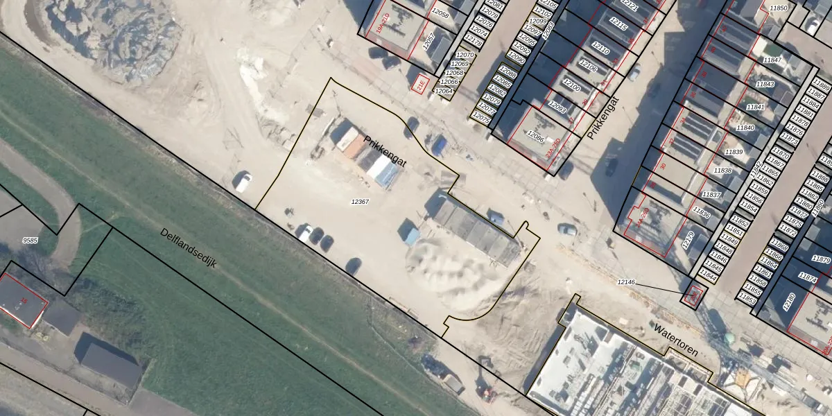 Het perceel waarop Prikkengat 38 staat heeft een oppervlakte van 2036 m². Dit is een zeer groot perceel. De perceeloppervlakte wordt geregistreerd door het Kadaster. Gedetailleerde informatie over de maten van dit perceel kunt u vinden in het rapport Kadastrale kaart met maatvoering van Prikkengat 38.