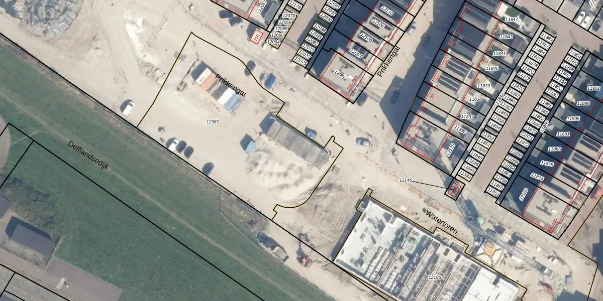 Het perceel waarop Prikkengat 82 staat heeft een oppervlakte van 2036 m². Dit is een zeer groot perceel. De perceeloppervlakte wordt geregistreerd door het Kadaster. Gedetailleerde informatie over de maten van dit perceel kunt u vinden in het rapport Kadastrale kaart met maatvoering van Prikkengat 82.