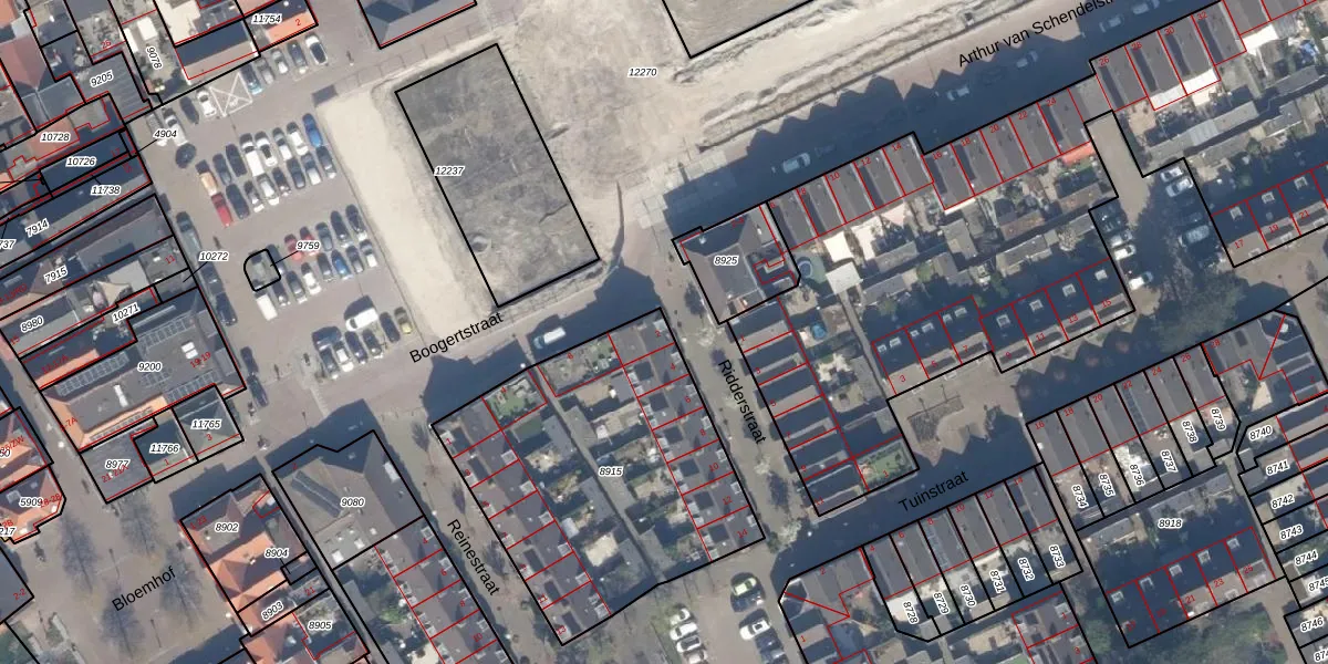 Het perceel waarop Ridderstraat 2 staat heeft een oppervlakte van 1396 m². Dit is een zeer groot perceel. De perceeloppervlakte wordt geregistreerd door het Kadaster. Gedetailleerde informatie over de maten van dit perceel kunt u vinden in het rapport Kadastrale kaart met maatvoering van Ridderstraat 2.