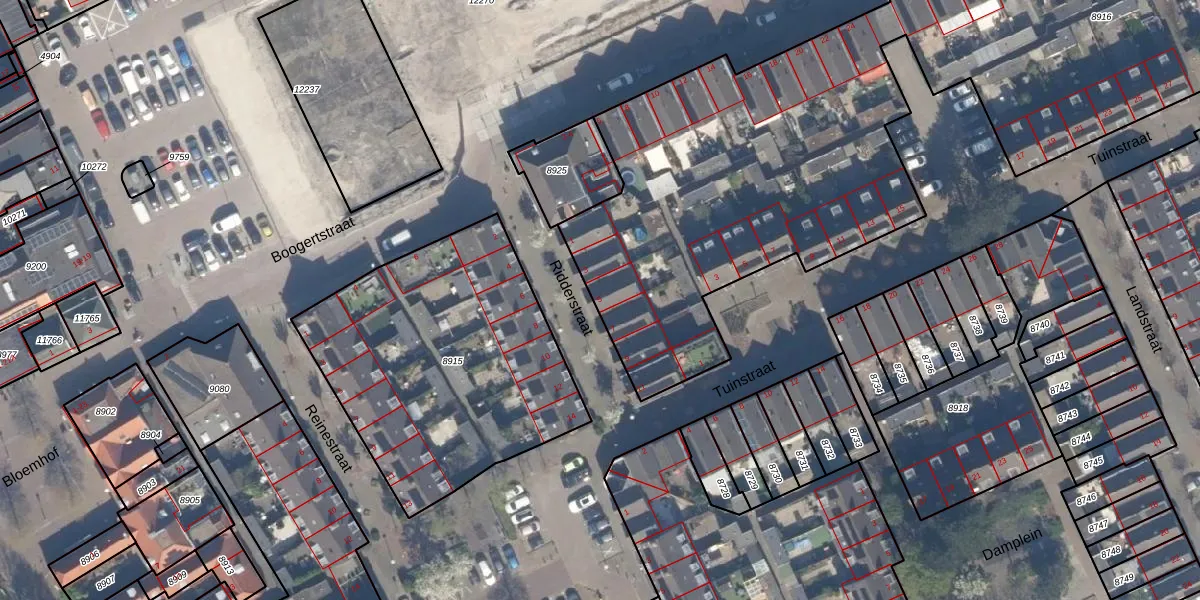 Het perceel waarop Ridderstraat 5 staat heeft een oppervlakte van 6640 m². Dit is een zeer groot perceel. De perceeloppervlakte wordt geregistreerd door het Kadaster. Gedetailleerde informatie over de maten van dit perceel kunt u vinden in het rapport Kadastrale kaart met maatvoering van Ridderstraat 5.
