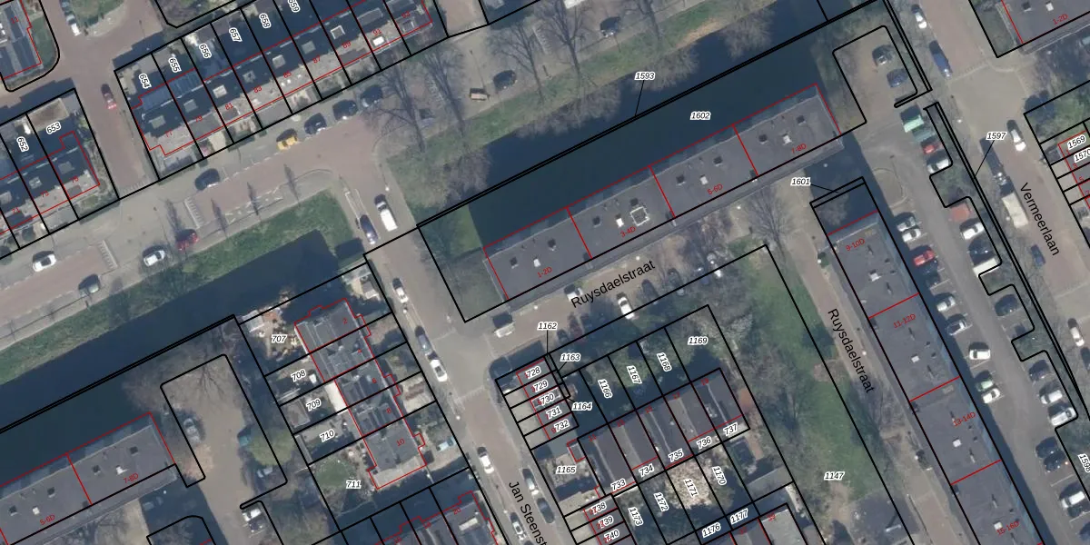 Het perceel waarop Ruysdaelstraat 2-D staat heeft een oppervlakte van 1690 m². Dit is een zeer groot perceel. De perceeloppervlakte wordt geregistreerd door het Kadaster. Gedetailleerde informatie over de maten van dit perceel kunt u vinden in het rapport Kadastrale kaart met maatvoering van Ruysdaelstraat 2-D.