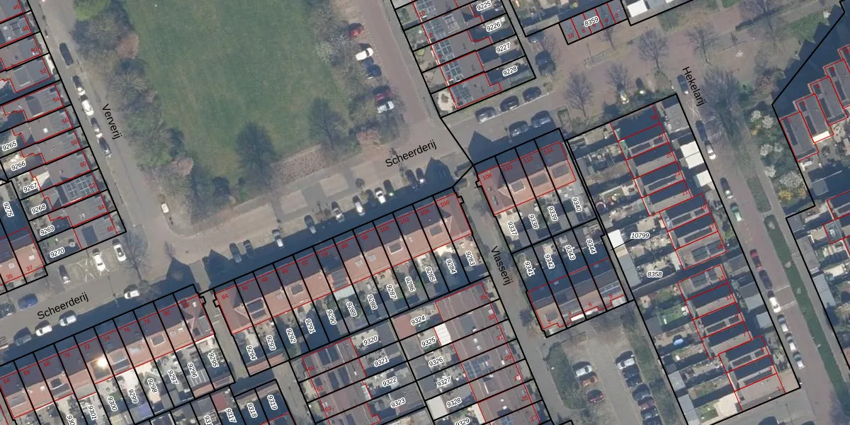 Het perceel waarop Scheerderij 104 staat heeft een oppervlakte van 115 m². Dit is een middelgroot perceel. De perceeloppervlakte wordt geregistreerd door het Kadaster. Gedetailleerde informatie over de maten van dit perceel kunt u vinden in het rapport Kadastrale kaart met maatvoering van Scheerderij 104.