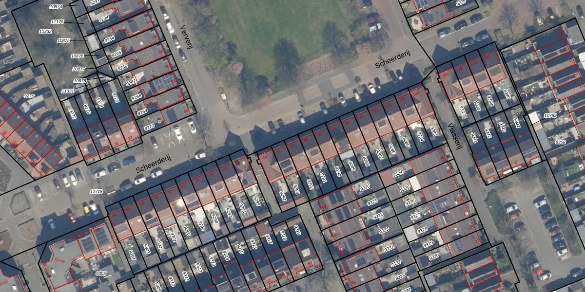 Het perceel waarop Scheerderij 88 staat heeft een oppervlakte van 115 m². Dit is een middelgroot perceel. De perceeloppervlakte wordt geregistreerd door het Kadaster. Gedetailleerde informatie over de maten van dit perceel kunt u vinden in het rapport Kadastrale kaart met maatvoering van Scheerderij 88.