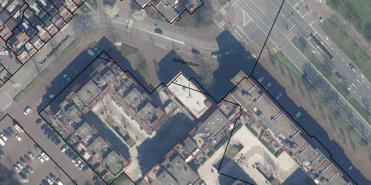 Het perceel waarop het adres ligt is MSS00-A-4228. De afkorting 'MSS00' staat voor kadastrale gemeente Maassluis. Het perceel is met 7435 m² relatief groot. Het gemiddelde ligt in de kadastrale gemeente Maassluis op 949,6 m². Het grootste perceel in de kadastrale gemeente is 34,0 ha. Het kleinste perceel heeft een oppervlakte van 0 m². Op het perceel liggen in totaal 74 adressen. De laatste wijziging in het de Basisregistratie Kadaster (BRK) was op 05-11-2009.