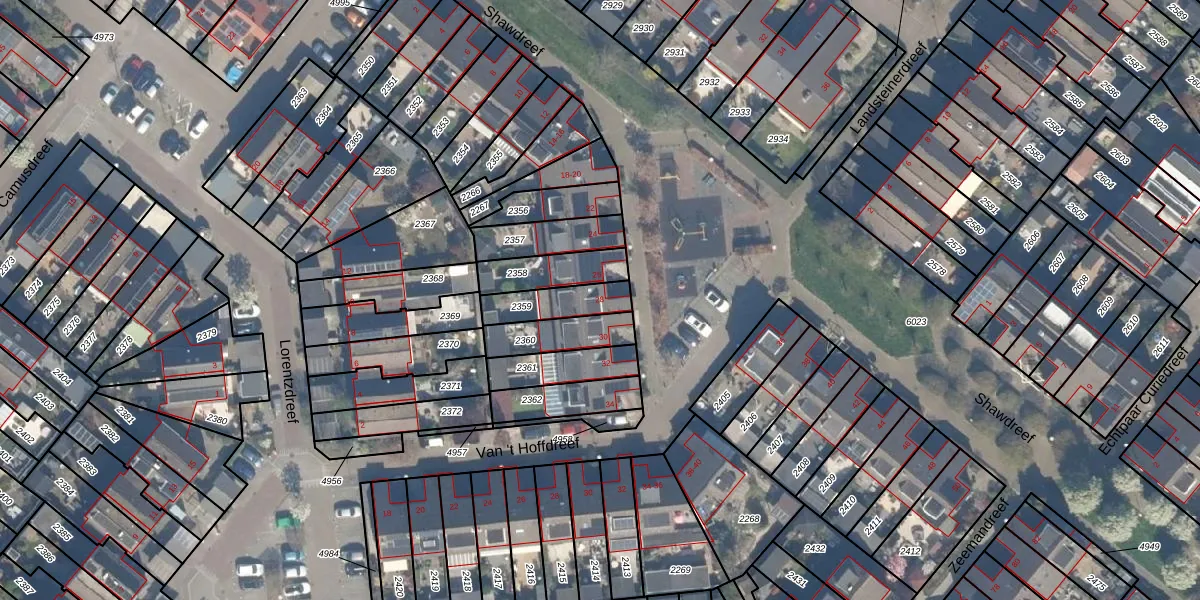 Gebruik de zoekbalk of klik op een perceel voor informatie over de adressen binnen dit perceel.