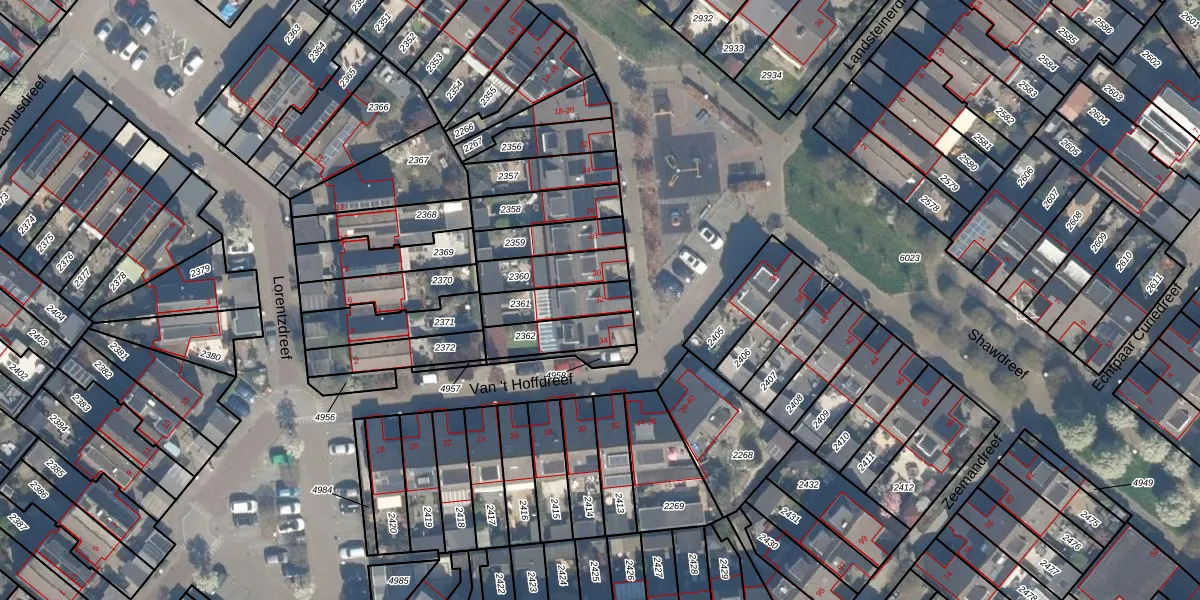 Gebruik de zoekbalk of klik op een perceel voor informatie over de adressen binnen dit perceel.
