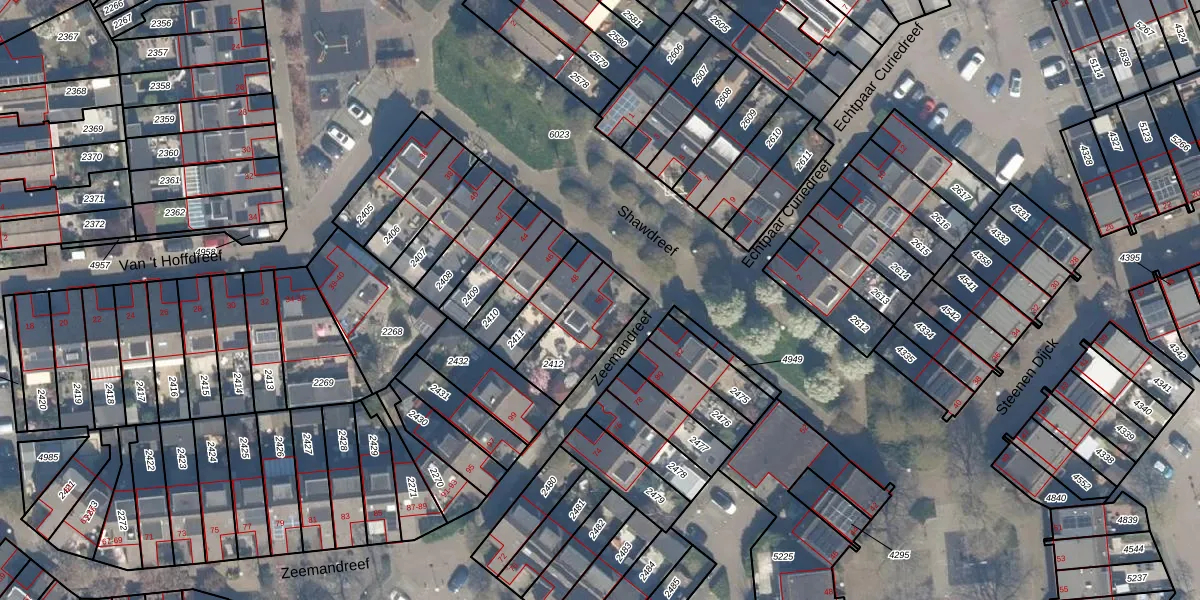 Gebruik de zoekbalk of klik op een perceel voor informatie over de adressen binnen dit perceel.