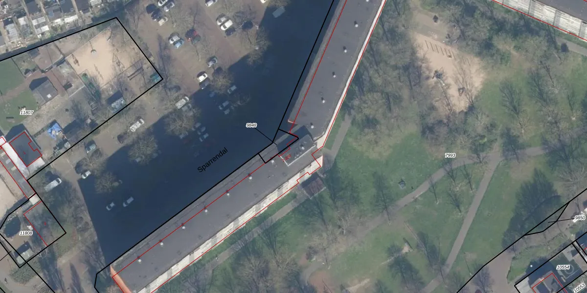 Het perceel waarop Sparrendal 16 staat heeft een oppervlakte van 2,0 ha. Dit is een zeer groot perceel. De perceeloppervlakte wordt geregistreerd door het Kadaster. Gedetailleerde informatie over de maten van dit perceel kunt u vinden in het rapport Kadastrale kaart met maatvoering van Sparrendal 16.