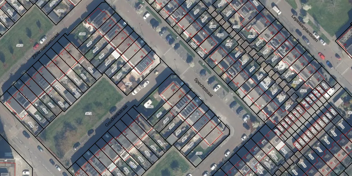 Het perceel waarop Spechtstraat 15 staat heeft een oppervlakte van 282 m². Dit is een middelgroot perceel. De perceeloppervlakte wordt geregistreerd door het Kadaster. Gedetailleerde informatie over de maten van dit perceel kunt u vinden in het rapport Kadastrale kaart met maatvoering van Spechtstraat 15.
