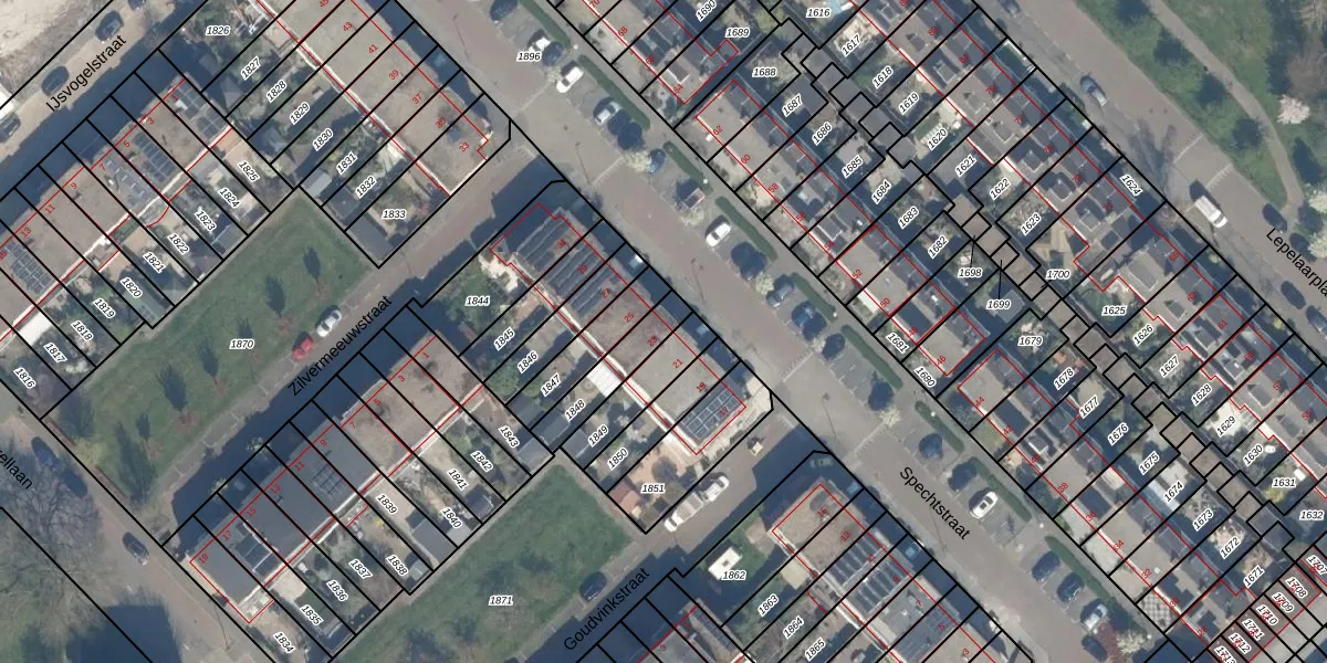 Het perceel waarop Spechtstraat 23 staat heeft een oppervlakte van 153 m². Dit is een middelgroot perceel. De perceeloppervlakte wordt geregistreerd door het Kadaster. Gedetailleerde informatie over de maten van dit perceel kunt u vinden in het rapport Kadastrale kaart met maatvoering van Spechtstraat 23.