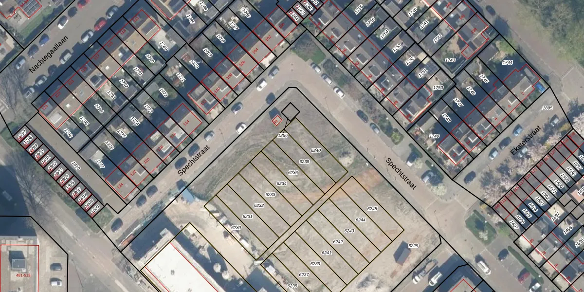 Spechtstraat 55 is gelegen op kadastraal perceel MSS00A6238. Deze kadastrale aanduiding is uniek en wordt gebruikt door het Kadaster om eigendomsrechten en andere zakelijke rechten vast te leggen. Het perceel maakt onderdeel uit van de kadastrale gemeente Maassluis.