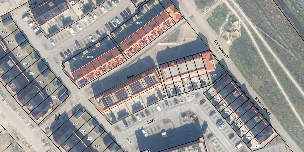 Het perceel waarop Spel 16 staat heeft een oppervlakte van 968 m². Dit is een groot perceel. De perceeloppervlakte wordt geregistreerd door het Kadaster. Gedetailleerde informatie over de maten van dit perceel kunt u vinden in het rapport Kadastrale kaart met maatvoering van Spel 16.
