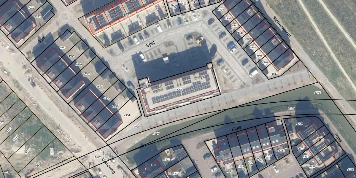 Het perceel waarop Spel 30 staat heeft een oppervlakte van 805 m². Dit is een groot perceel. De perceeloppervlakte wordt geregistreerd door het Kadaster. Gedetailleerde informatie over de maten van dit perceel kunt u vinden in het rapport Kadastrale kaart met maatvoering van Spel 30.