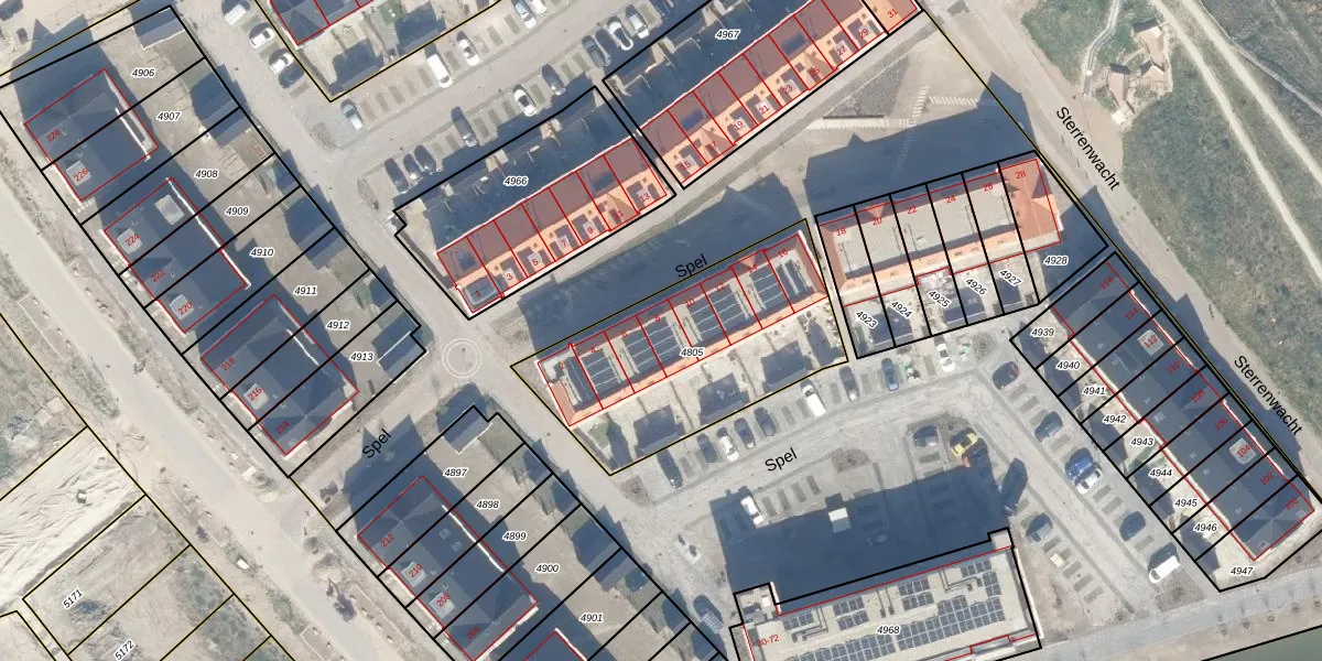 Het perceel waarop Spel 8 staat heeft een oppervlakte van 968 m². Dit is een groot perceel. De perceeloppervlakte wordt geregistreerd door het Kadaster. Gedetailleerde informatie over de maten van dit perceel kunt u vinden in het rapport Kadastrale kaart met maatvoering van Spel 8.