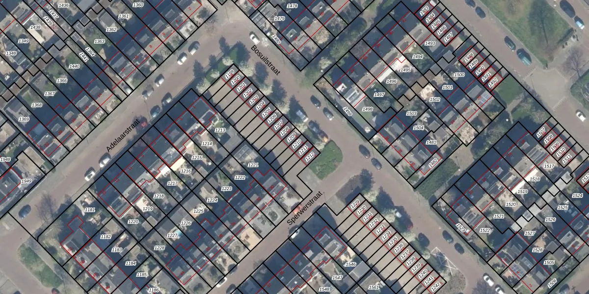Gebruik de zoekbalk of klik op een perceel voor informatie over de adressen binnen dit perceel.