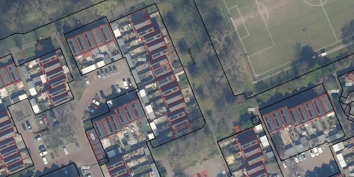 Het perceel waarop Spinnerij 11 staat heeft een oppervlakte van 2185 m². Dit is een zeer groot perceel. De perceeloppervlakte wordt geregistreerd door het Kadaster. Gedetailleerde informatie over de maten van dit perceel kunt u vinden in het rapport Kadastrale kaart met maatvoering van Spinnerij 11.