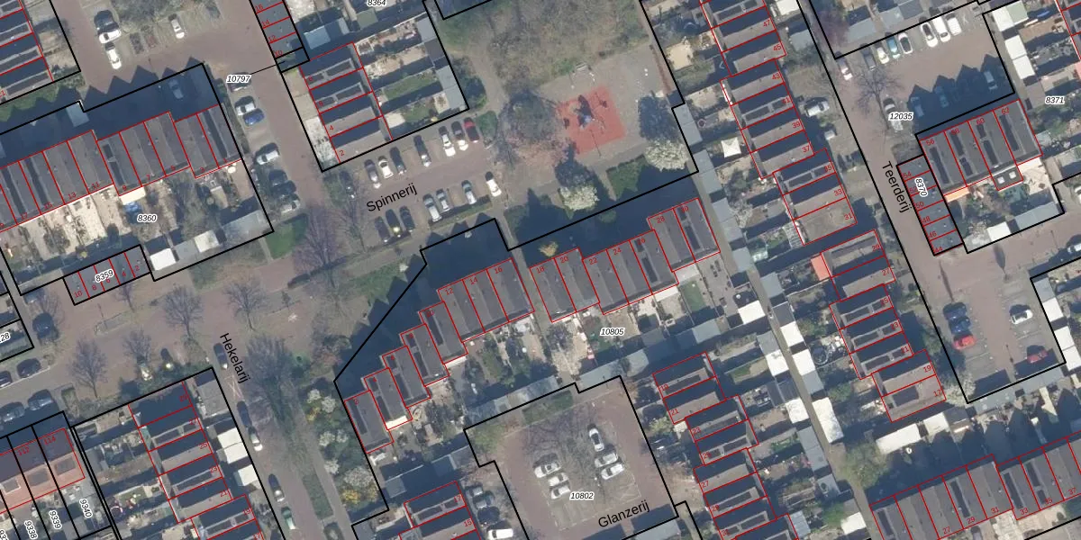 Het perceel waarop Spinnerij 18 staat heeft een oppervlakte van 9969 m². Dit is een zeer groot perceel. De perceeloppervlakte wordt geregistreerd door het Kadaster. Gedetailleerde informatie over de maten van dit perceel kunt u vinden in het rapport Kadastrale kaart met maatvoering van Spinnerij 18.