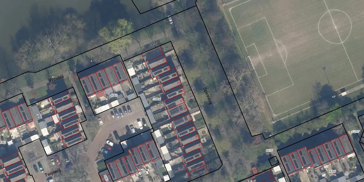 Het perceel waarop Spinnerij 19 staat heeft een oppervlakte van 2185 m². Dit is een zeer groot perceel. De perceeloppervlakte wordt geregistreerd door het Kadaster. Gedetailleerde informatie over de maten van dit perceel kunt u vinden in het rapport Kadastrale kaart met maatvoering van Spinnerij 19.