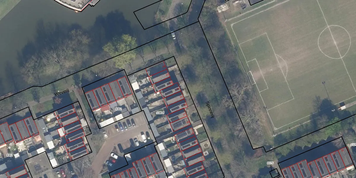 Het perceel waarop Spinnerij 23 staat heeft een oppervlakte van 2185 m². Dit is een zeer groot perceel. De perceeloppervlakte wordt geregistreerd door het Kadaster. Gedetailleerde informatie over de maten van dit perceel kunt u vinden in het rapport Kadastrale kaart met maatvoering van Spinnerij 23.