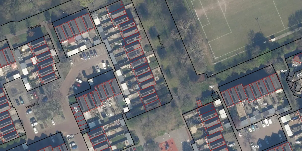Het perceel waarop Spinnerij 9 staat heeft een oppervlakte van 2185 m². Dit is een zeer groot perceel. De perceeloppervlakte wordt geregistreerd door het Kadaster. Gedetailleerde informatie over de maten van dit perceel kunt u vinden in het rapport Kadastrale kaart met maatvoering van Spinnerij 9.